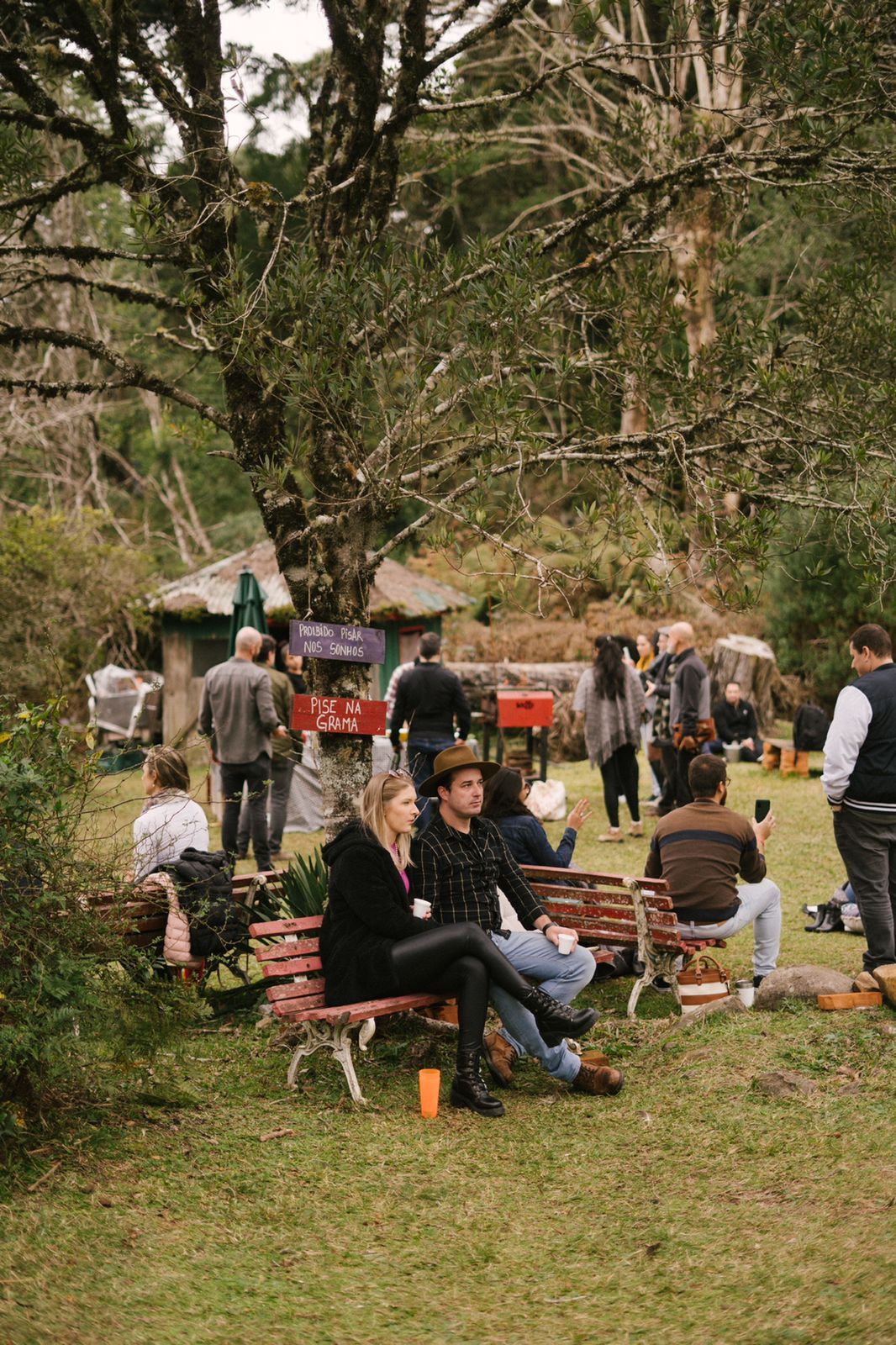 (trilhas, cachoeiras, lago, e mais de 20 hectares de propriedade com mata nativa preservada), mesa de boas-vindas com