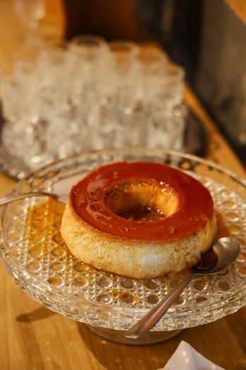 Sobremesa: pudim, sagu e creme acompanhado de café com grostoli.
