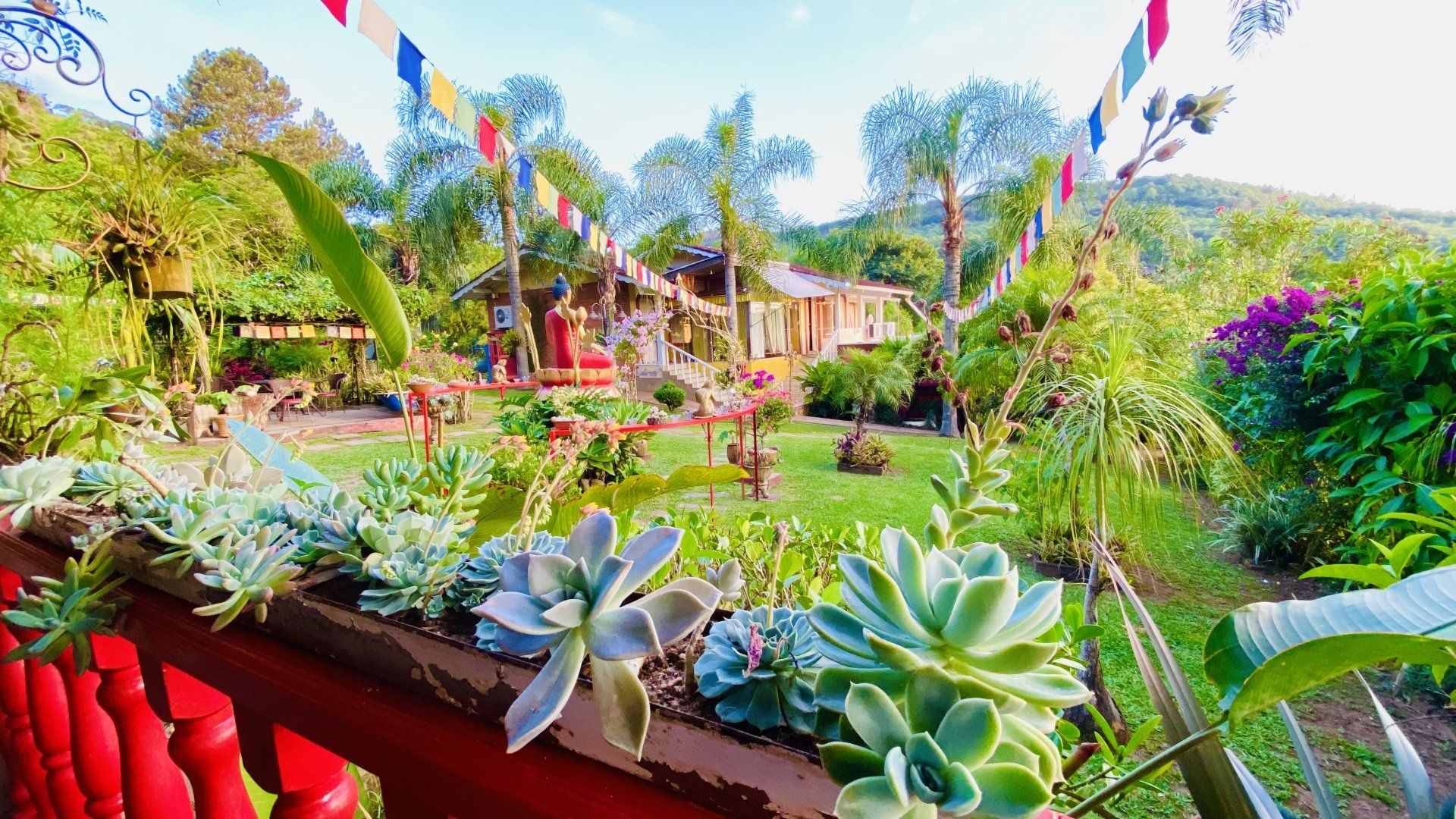 O Jardim, cheio de belas plantas, flores e bonsais, idealizado e cuidado pelo Chef Tibetano a Ogyen Shak, é um dos atrativos desta experiência. Conta com lindos cenários para contemplação e fotos, ao som de mantras tibetanos, além da possibilidade de degustar os sabores nas mesas da área externa.