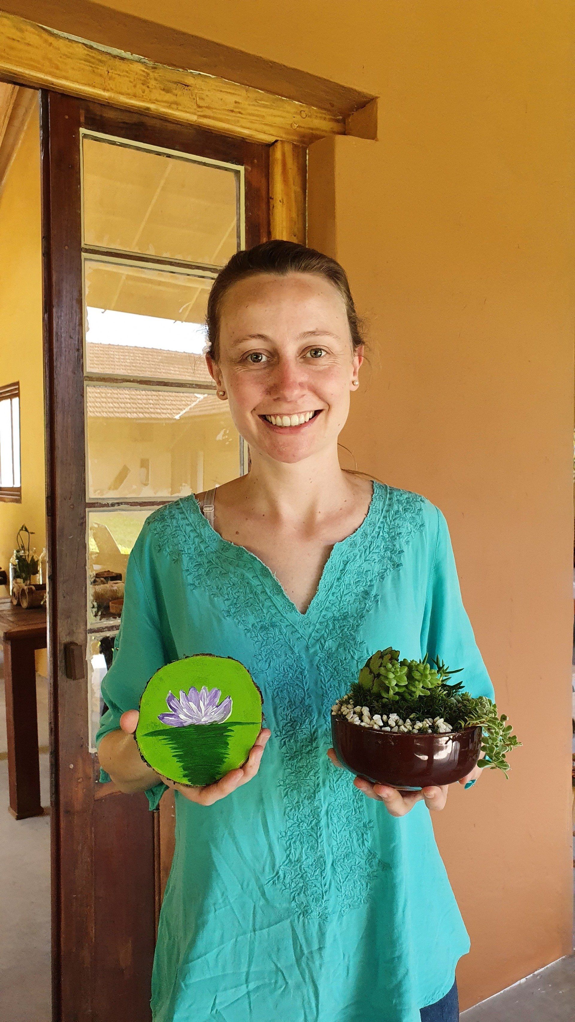 Arte e Jardim você tem a oportunidade de criar peças que ganham significados quando feitas à mão (pintura em aquarela e em madeira, mosaico, marcenaria, kokedamas, terrários). O momento para você relaxar e exercer a sua criatividade, além de claro dividr seus aprendizados com o grupo e contemplar a natureza.