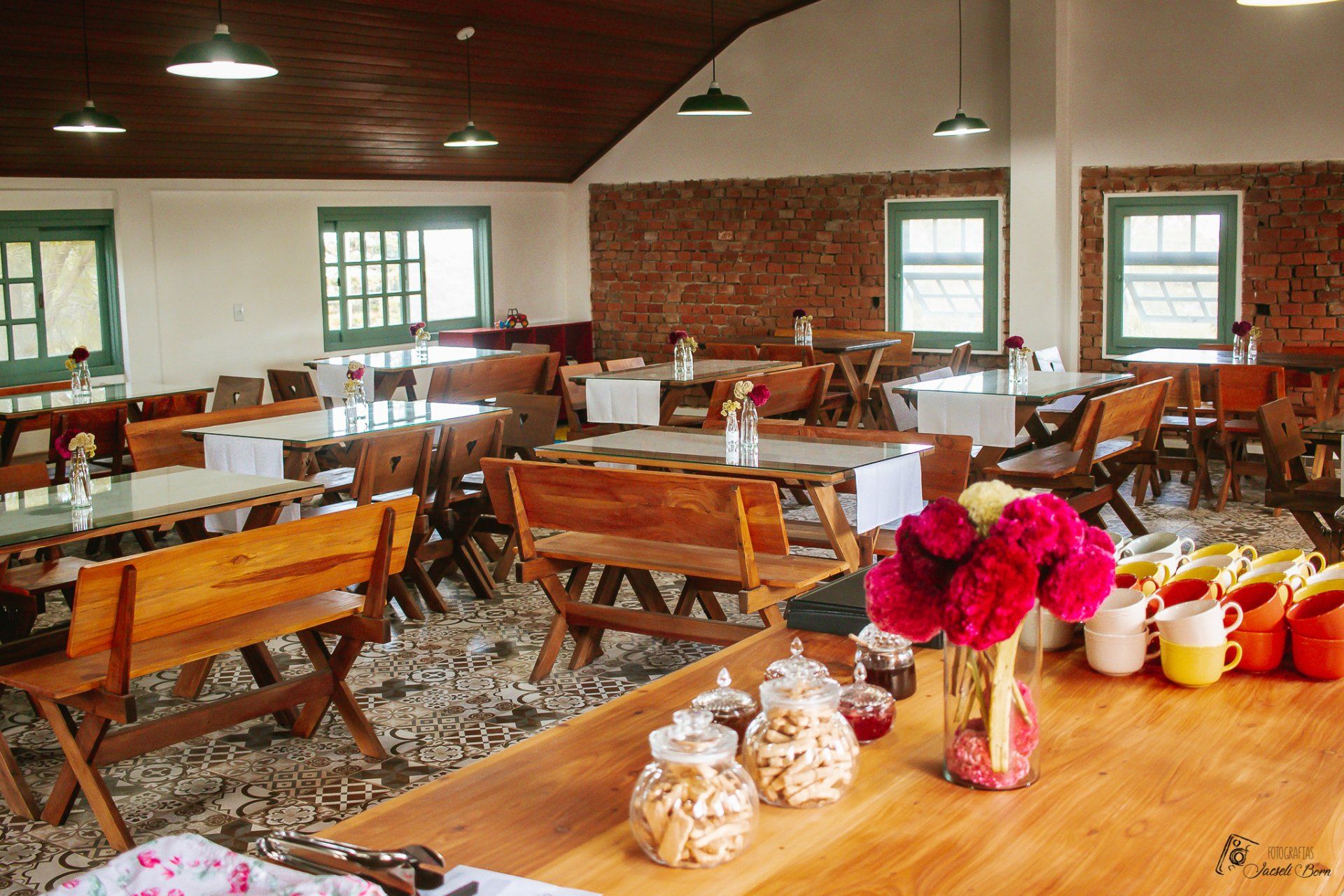 O café é servido num salão anexo à um antigo casarão, no estilo buffet. Nos meses frios é acompanhado de um fogão a lenha. Você também pode apreciar o café em uma linda varanda para os dias de temperaturas agradáveis ou a sombra de uma enorme figueira.