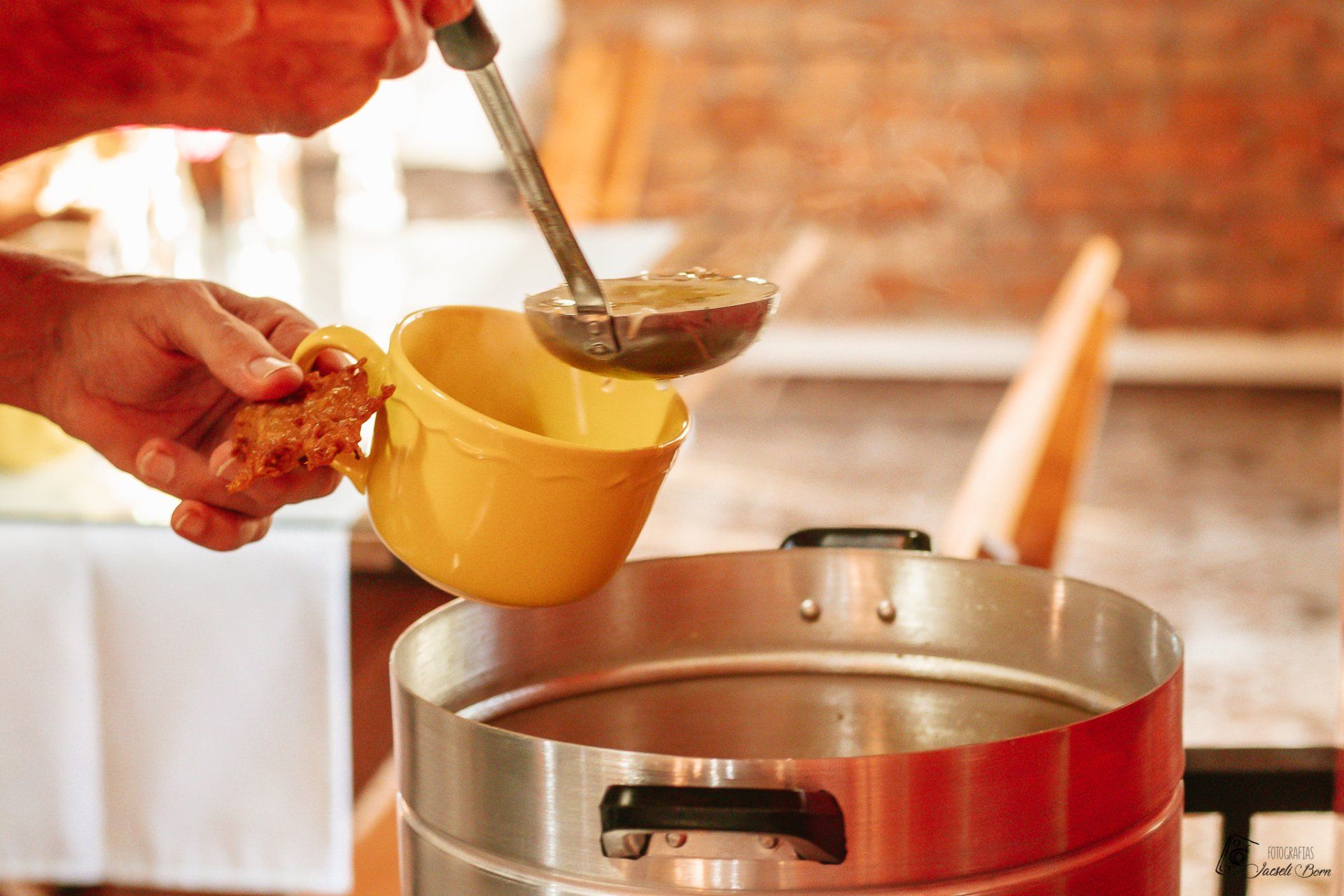 Por lá você encontra sopa de galinha caipira, copa de porco assada, rievelsback, pastéis, linguiça frita, queijos artesanais, lombo defumado, salame, pães assados quase sempre em forno de rua, bolos, cucas, geléias, schimiers, tudo feito na cozinha.