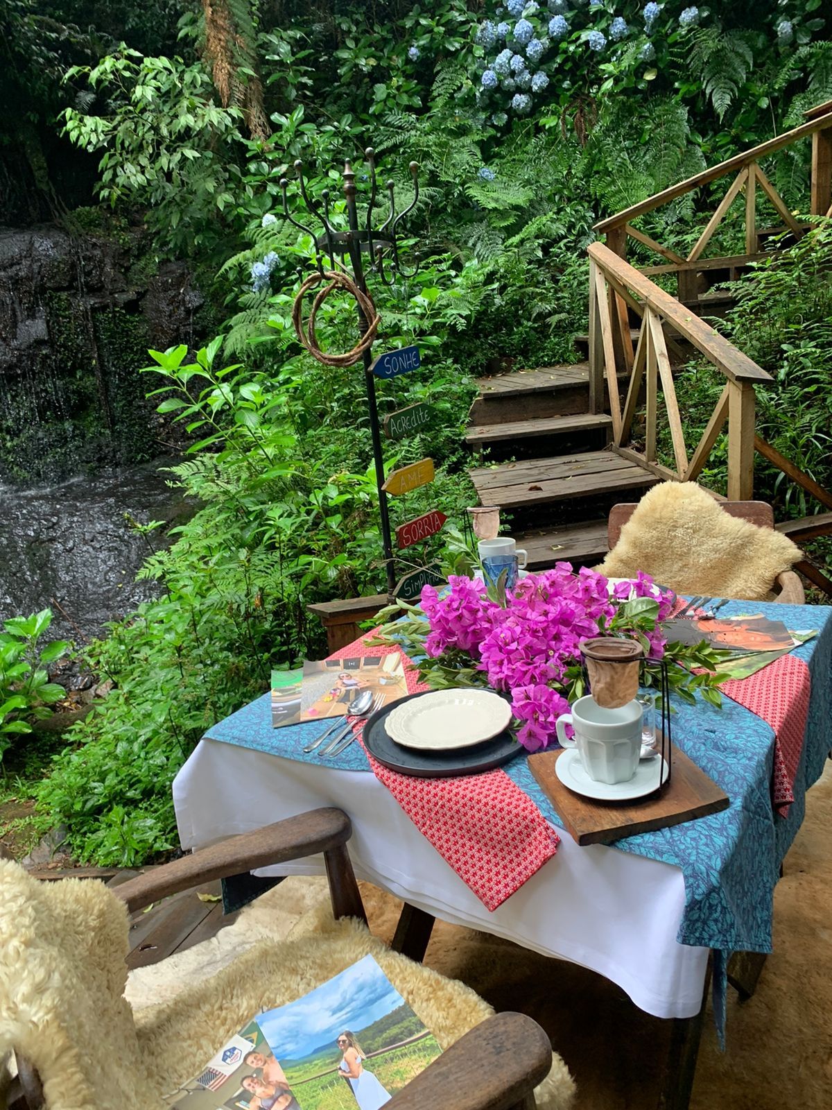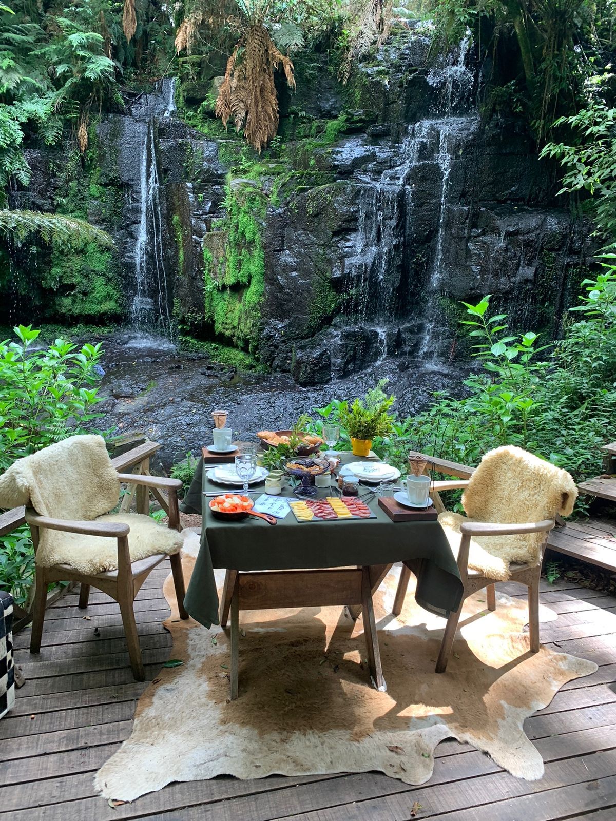 Café da manhã na cachoeira