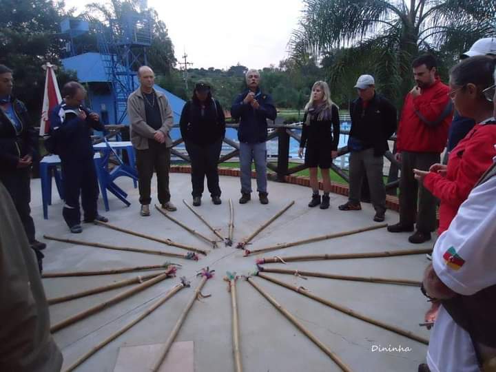 Preparação Mística, entrega de amuleto e cajado feito pelos índios Guarani.