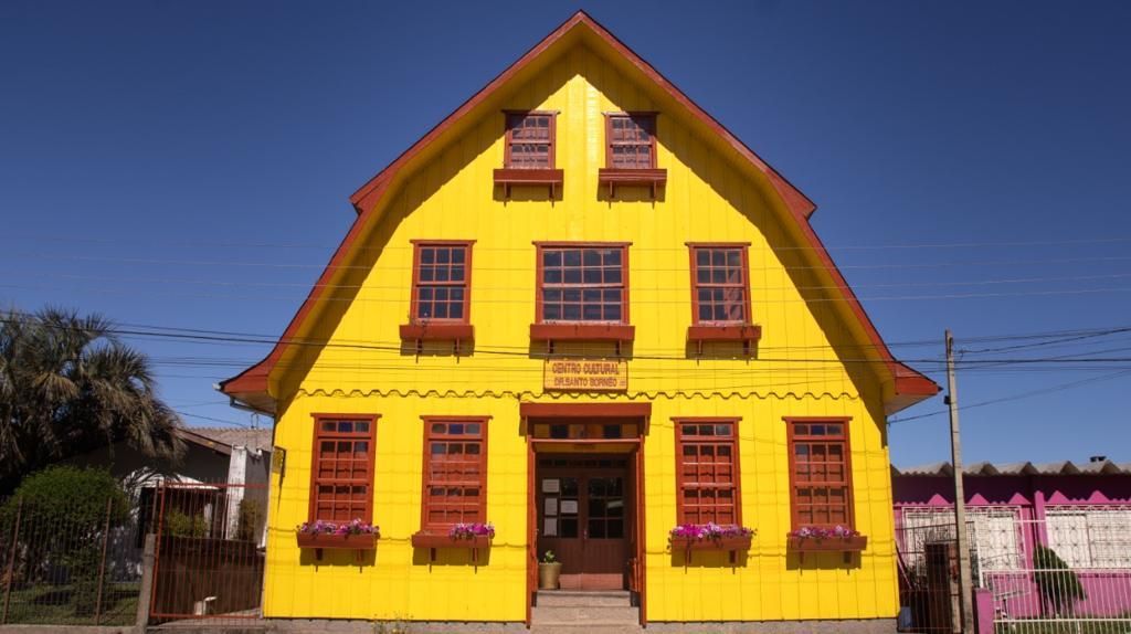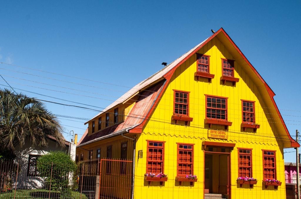 Na praça central o Cento Cultural, uma construção em madeira, de cor amarela, chama a atenção dos visitantes.