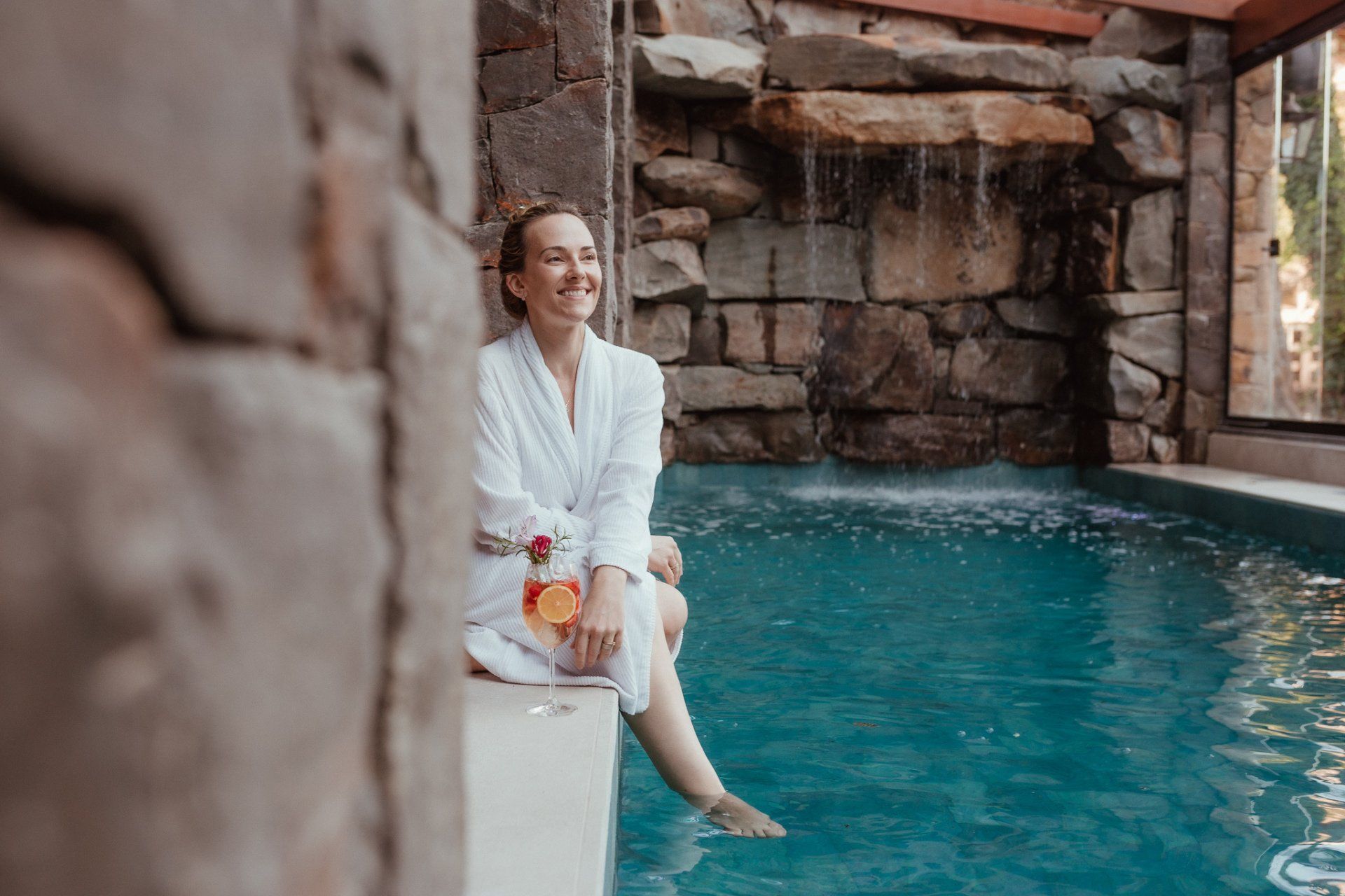 Após os tratamentos, fica disponível por uma hora o acesso à área de relaxamento, que conta com espreguiçadeiras, piscina aquecida com cascata e sauna seca.