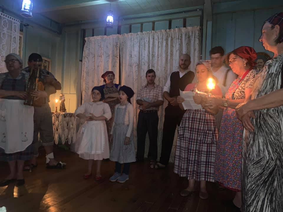 Caminhada no escuro para relembrar o tempo em que os imigrantes iam a pé até a casa do vizinho à noite, para encontros.