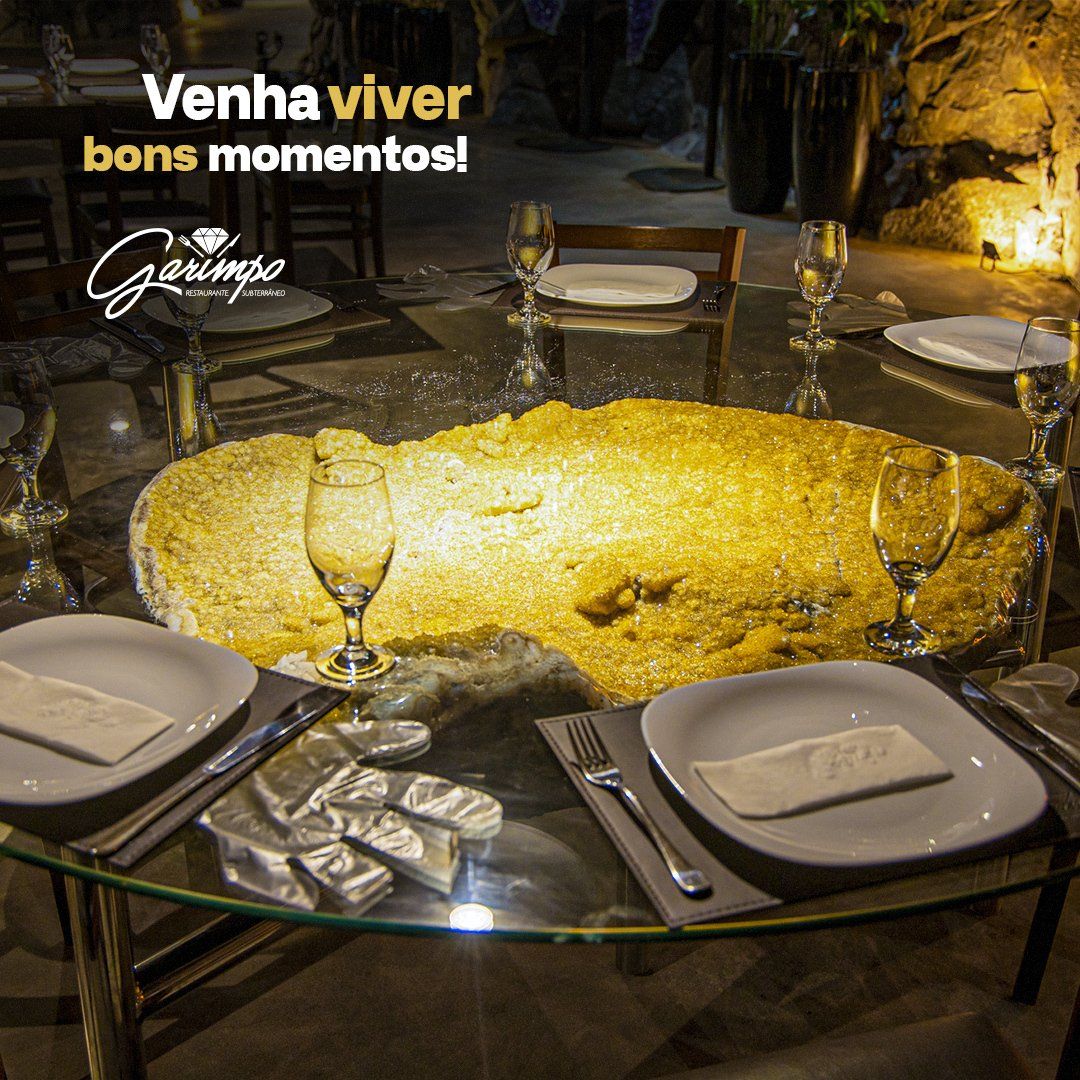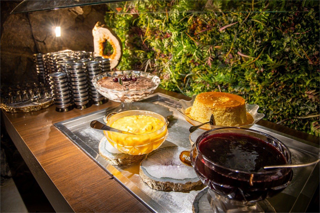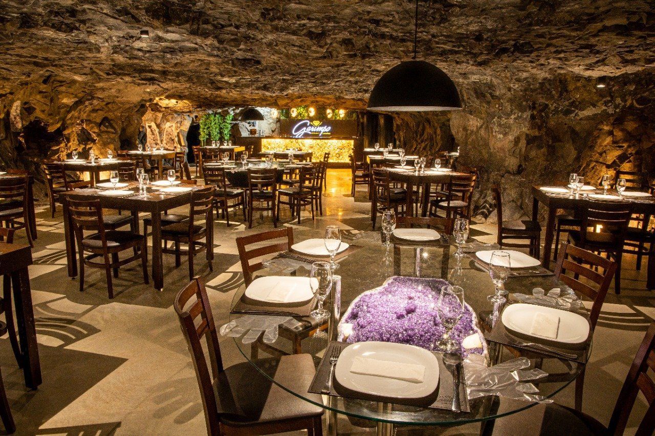 pratos muito diversificados e uma imersão em uma mina natural de pedra ametista tematizada com