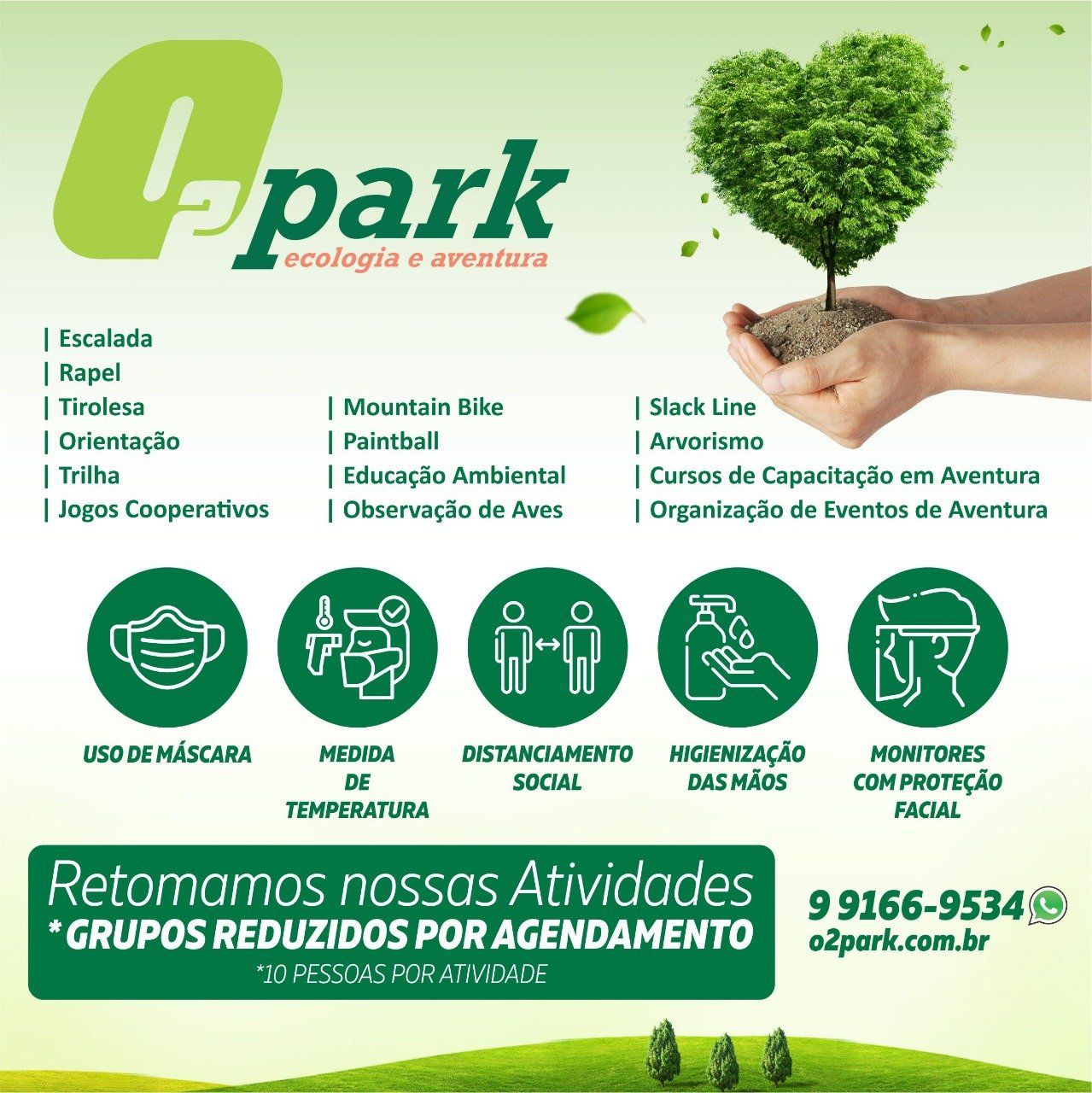 O O2 Park possui um espaço que contempla orientação, MTB-O, Bike park, run park, arvorismo, tirolesa, paintball, oficinas ambientais, observação de aves, trilhas interpretativas, jogos cooperativos e muita natureza.