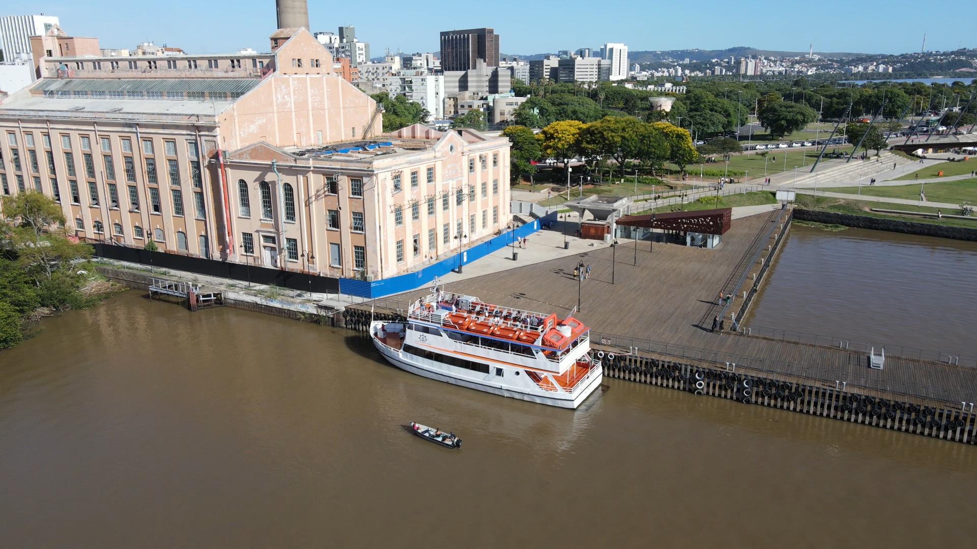desembarcando na orla no píer Usina do Gasômetro. Todo o passeio você terá a