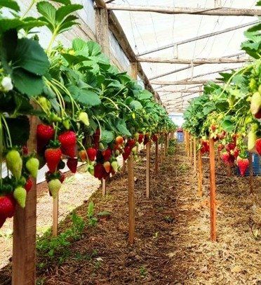 A Granja Bonini é a empreendedora local que produz morangos de boa qualidade, comercializando nos supermercados renomados da região.
