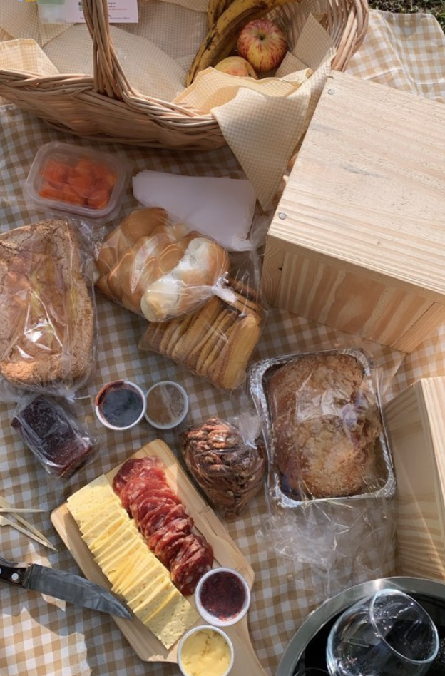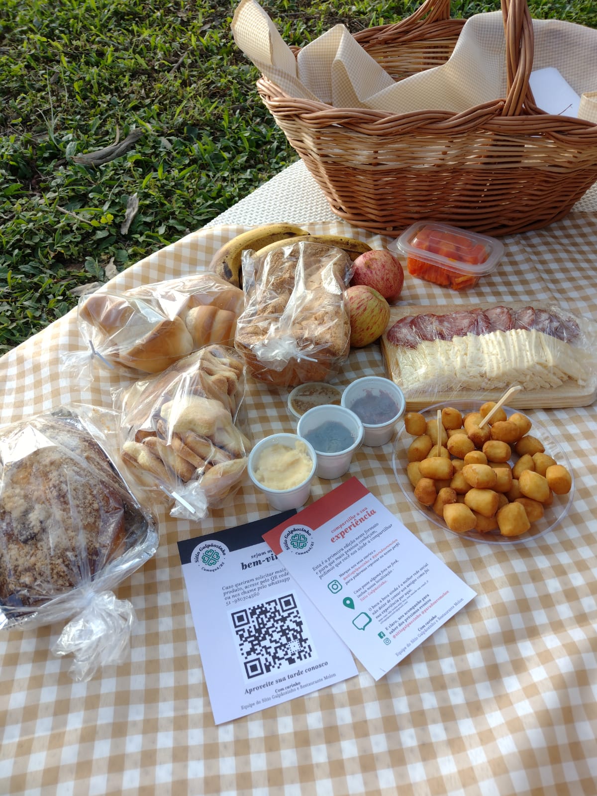 O cliente tem a opção de escolher nossas cestas montadas ou personalizar toda a sua experiência. No dia do evento, a cesta fica preparada para retirada com os itens escolhidos e é possível solicitar novos itens através de um aplicativo.