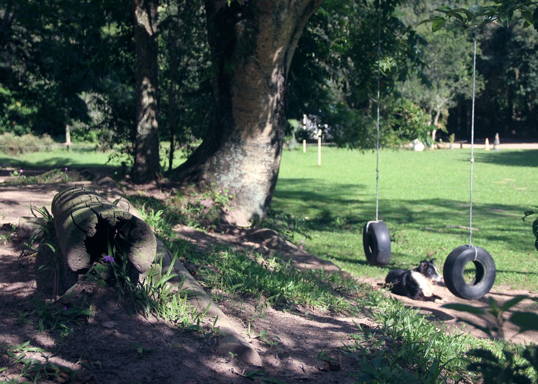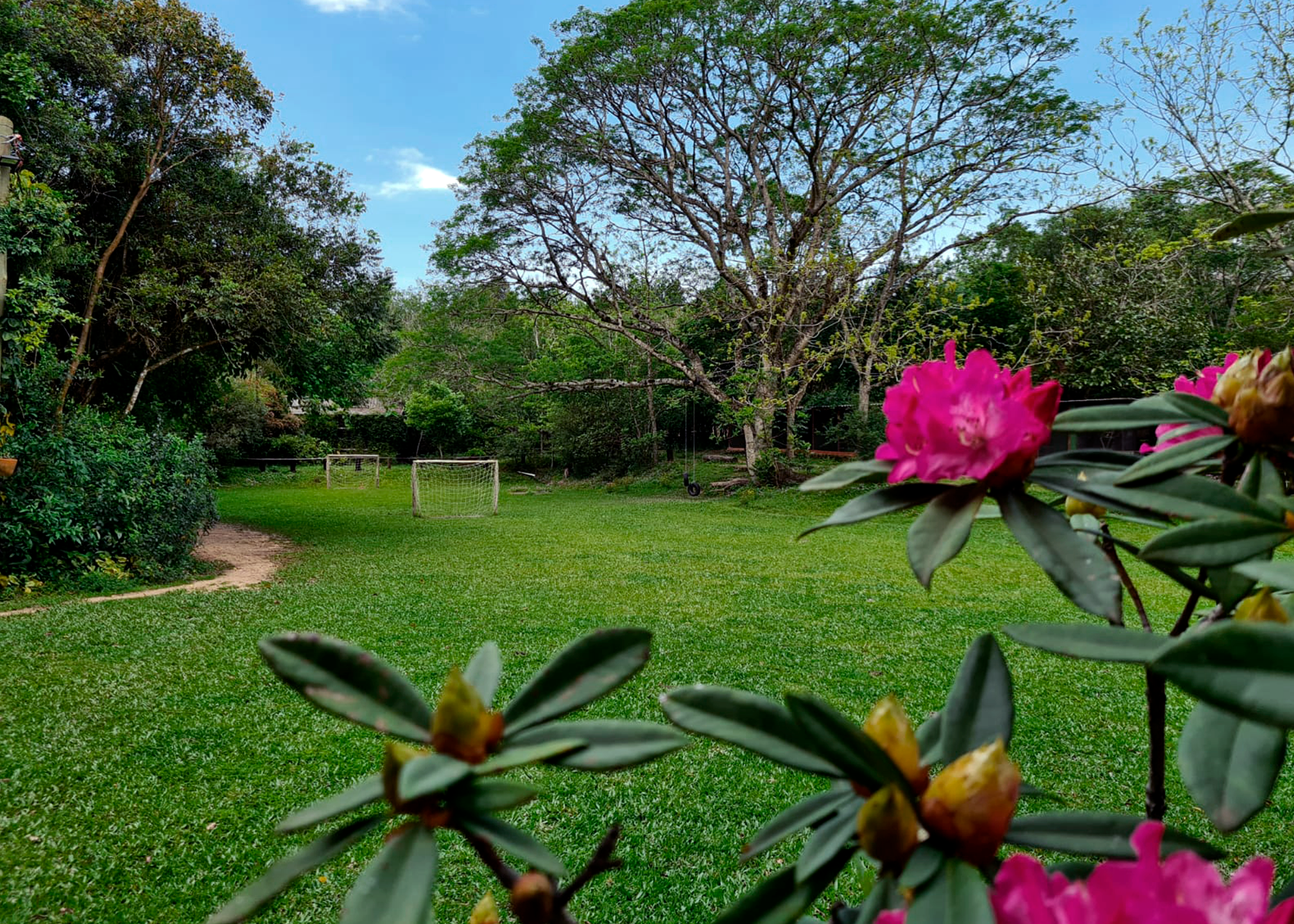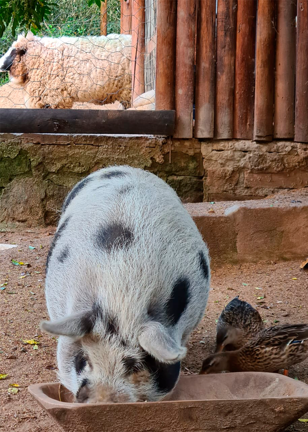 todo o espaço do Sítio fica disponível, desde a área de recreação, com balanço de pneu, espaço para brincar de futebol e de vôlei, tirolesa e falsa baiana, até a área dos animais, onde você conhece o porco
