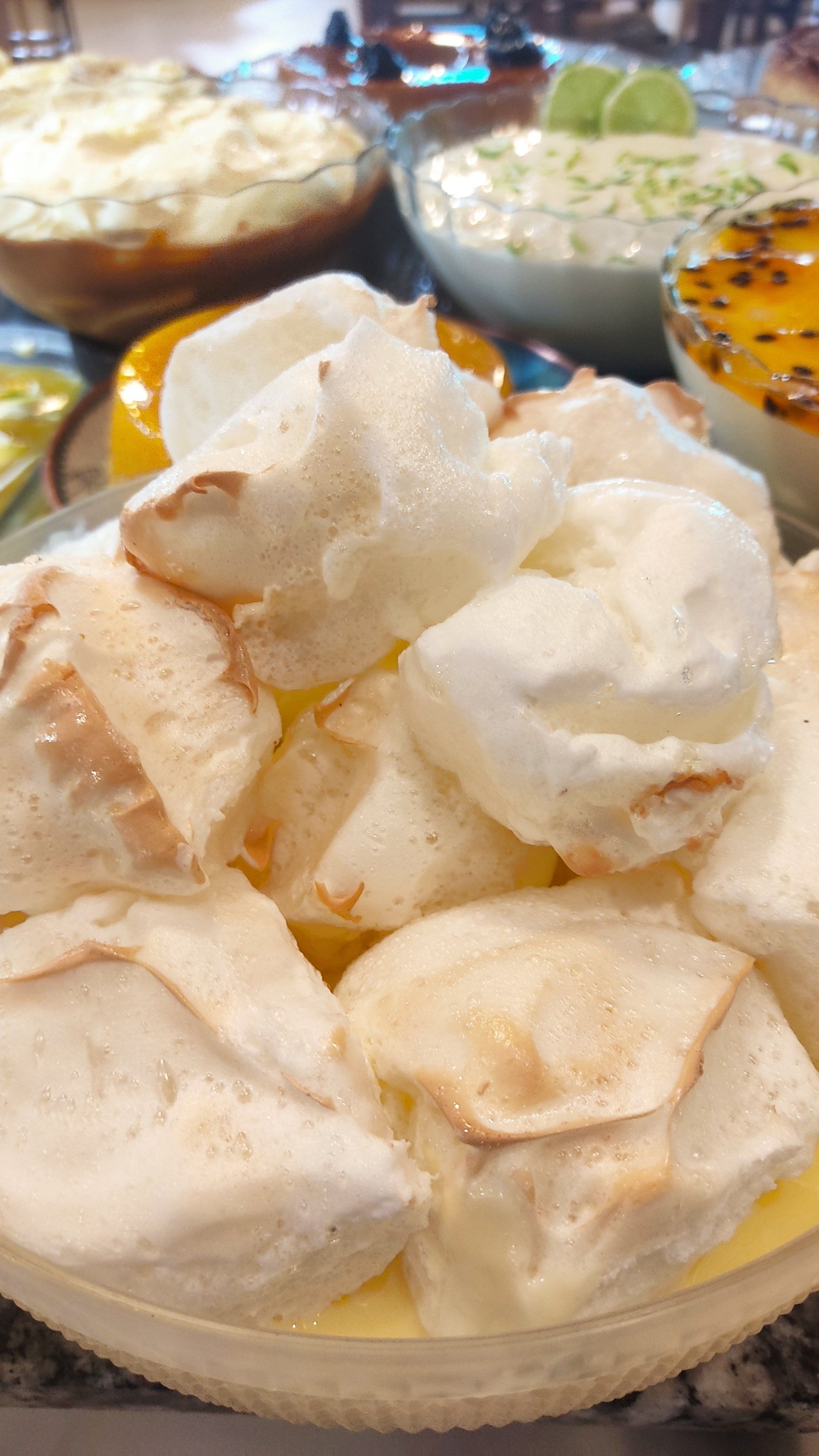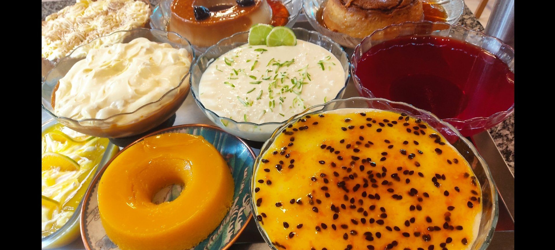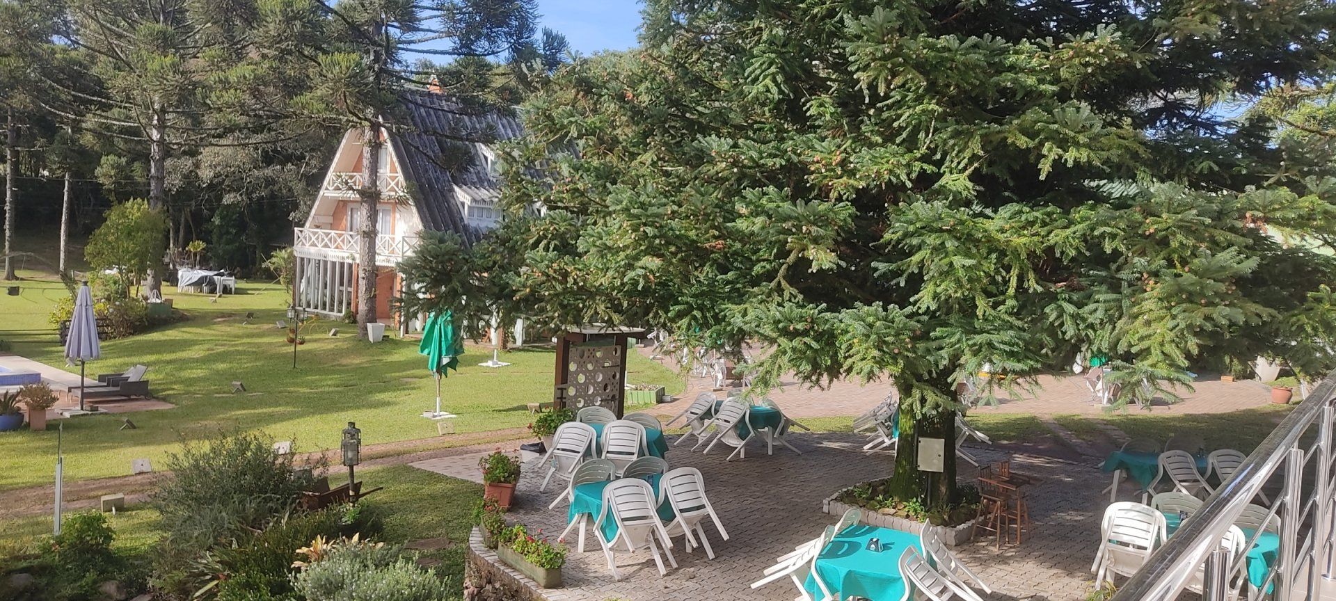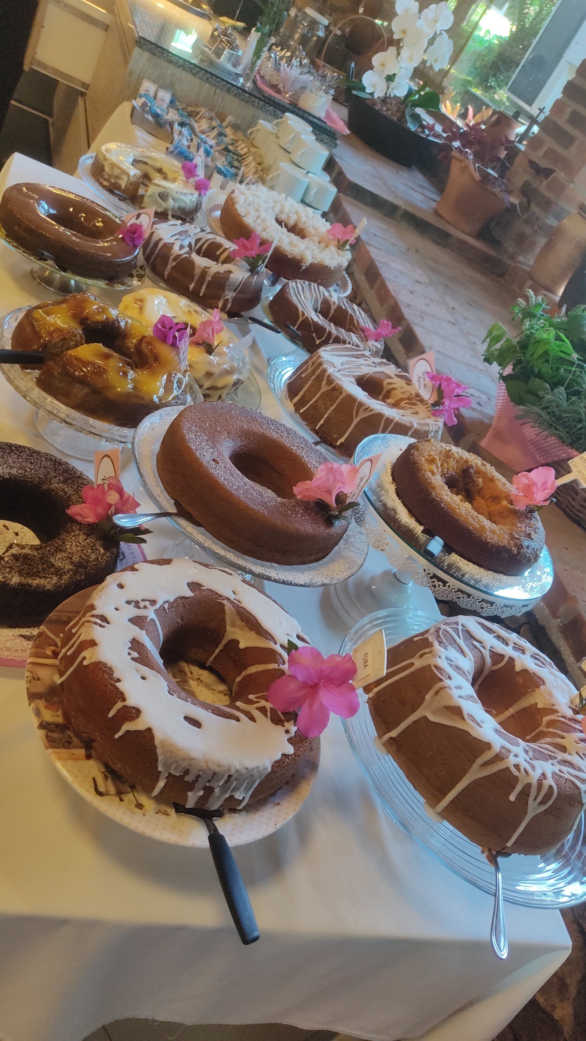 Almoço típico alemão/Italiano com chapa de grelhados, fogão à lenha com sopas, feijoada, lasanhas, quitutes, peixe, frango, vasto buffet de saladas, sobremesas e na sequência, bolos, chás naturais e café.