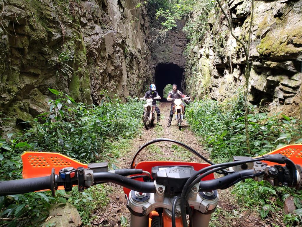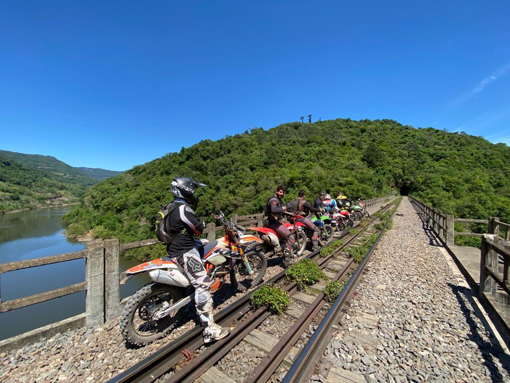de Veranópolis, são trilhas exclusivas passando por rios, cachoeiras, ferrovias antigas, túneis desativados, pontes férreas, picos de montes, com suas vistas e paisagens magníficas.
