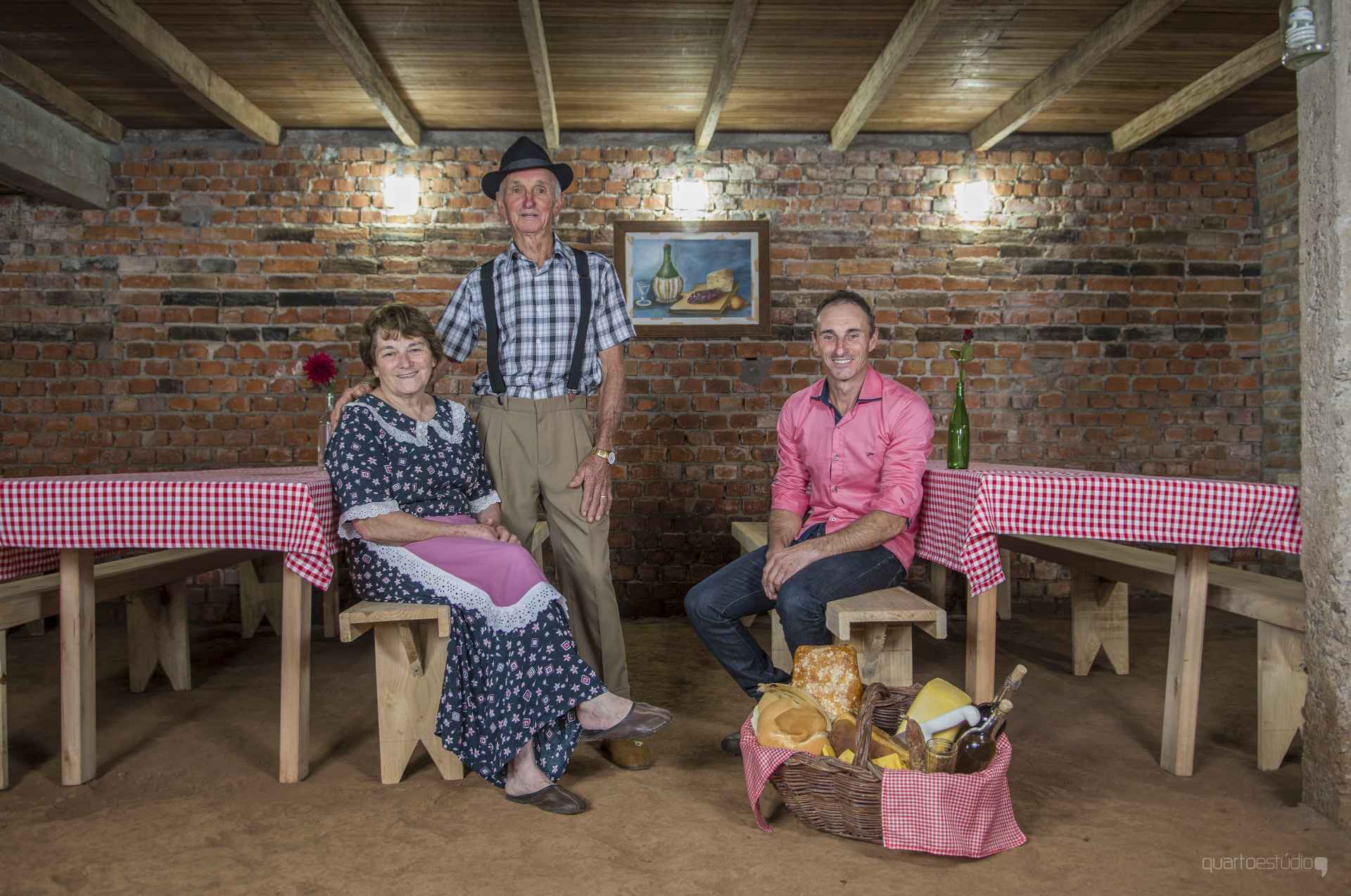 15h - Osteria La Colassion, lanche da tarde com o seguinte cardápio: Pão colonial, Pão de milho, Grostoli, Biscoito, Bolo, Manteiga, Mel, Schimias, Queijo, Salame, Salame e queijo frito, Polenta brustolada, Café, Leite, Suco e Vinho.