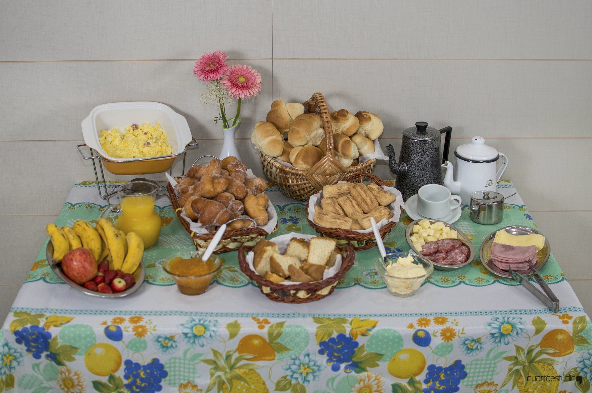 Restaurante e Café Colonial Dona Inês, onde servimos as seguintes iguarias no Brunch: Pão Colonial, Pão integral, Pão doce, Pão de Queijo, Bolo, Cuca, Mel, Margarina, Nata, Doce de abobora, Presunto, Polenta mole, Queijo fatiado, Queijo Colonial, Queijo de ervas finas, Salame, Copa, Fortaia, Frutas, Café preto, Café com leite e Sucos.