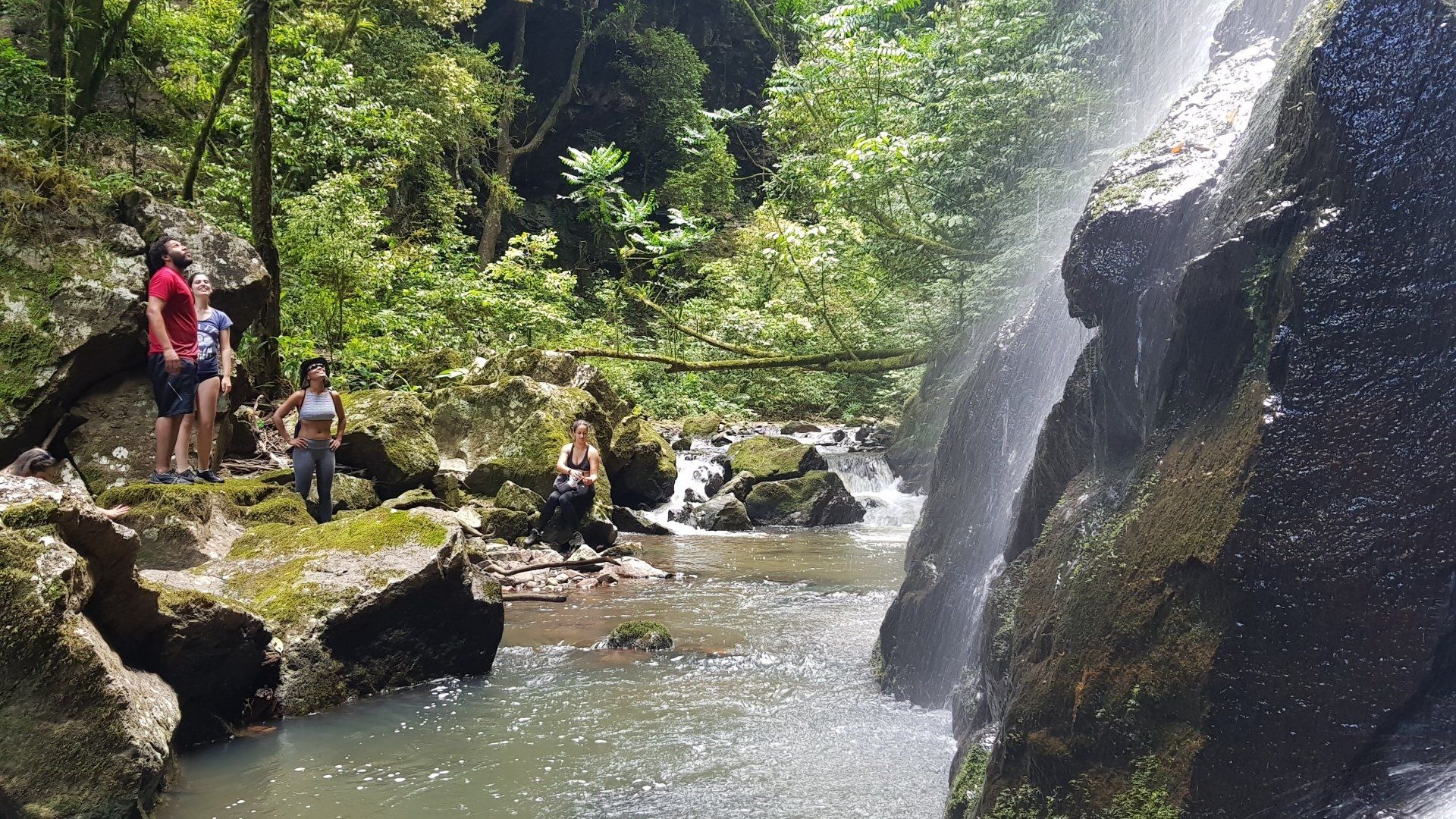 Saímos do Parque das Laranjeiras com transporte por cerca de 7 km até o início da trilha. Tempo médio de 1 hora e meia até chegar na cachoeira. Tempo de permanência 40min para banho, relaxamento e contemplação.