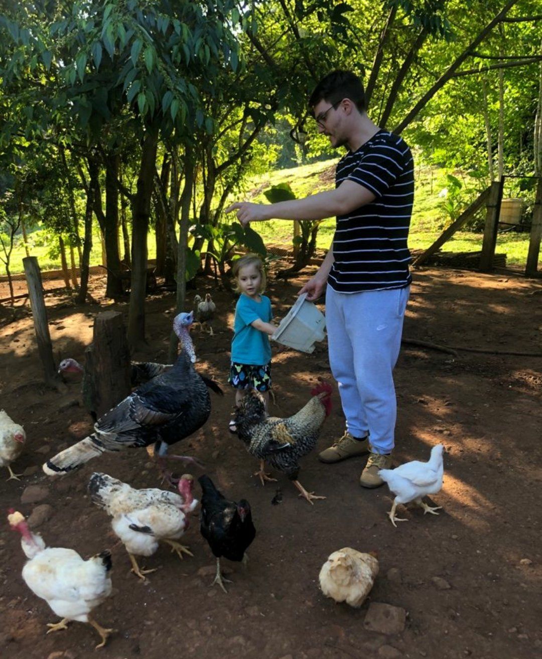 Dia no Sítio das Aves inclui o Sítio Tour com: trilha na floresta, visita ao Recanto das Mimosas para recolher ovos e interagir com os animais