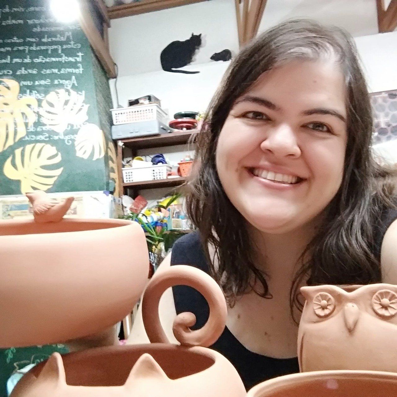 No interior do ateliê encontra-se a loja, onde o visitante pode apreciar e adquirir peças exclusivas como esculturas, utilitários, vasos, acessórios e suvenirs, todas com o toque lúdico e amoroso da artista.