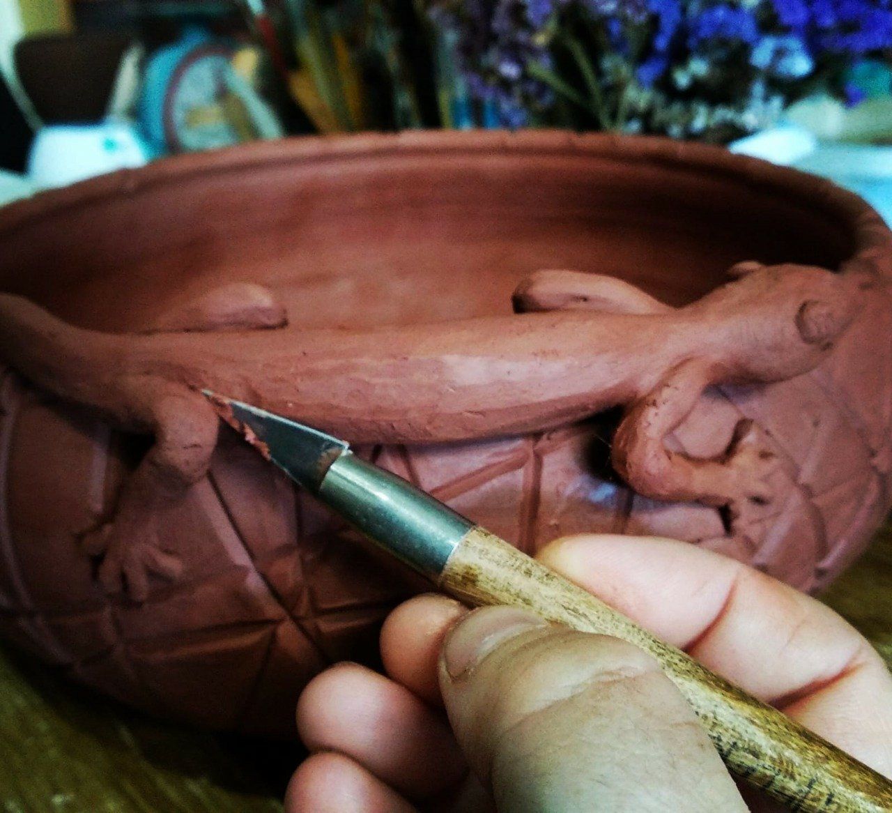 - artista com o qual a ceramista se identifica em vários aspectos - para bem receber os visitantes.